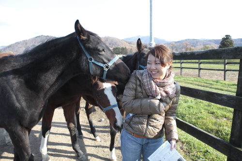 まずは、様似で若駒にモテモテのデザイナー女子