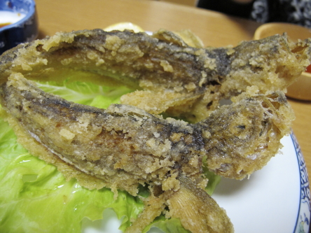 ハタハタの天ぷらは頭からバリバリ食べます。