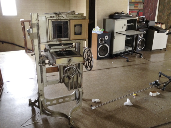 歴代の誰かが加工したようですが、たぶん8×10のカメラ。